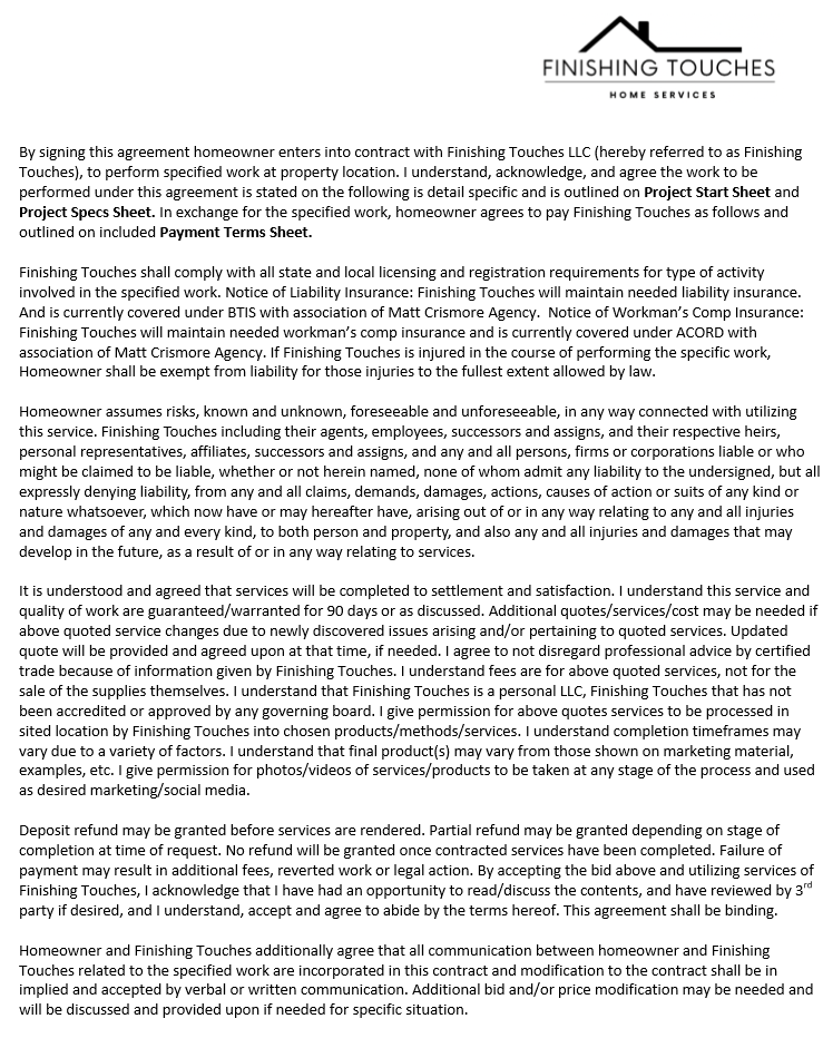 Finishing Touches Project Agreement & Contract